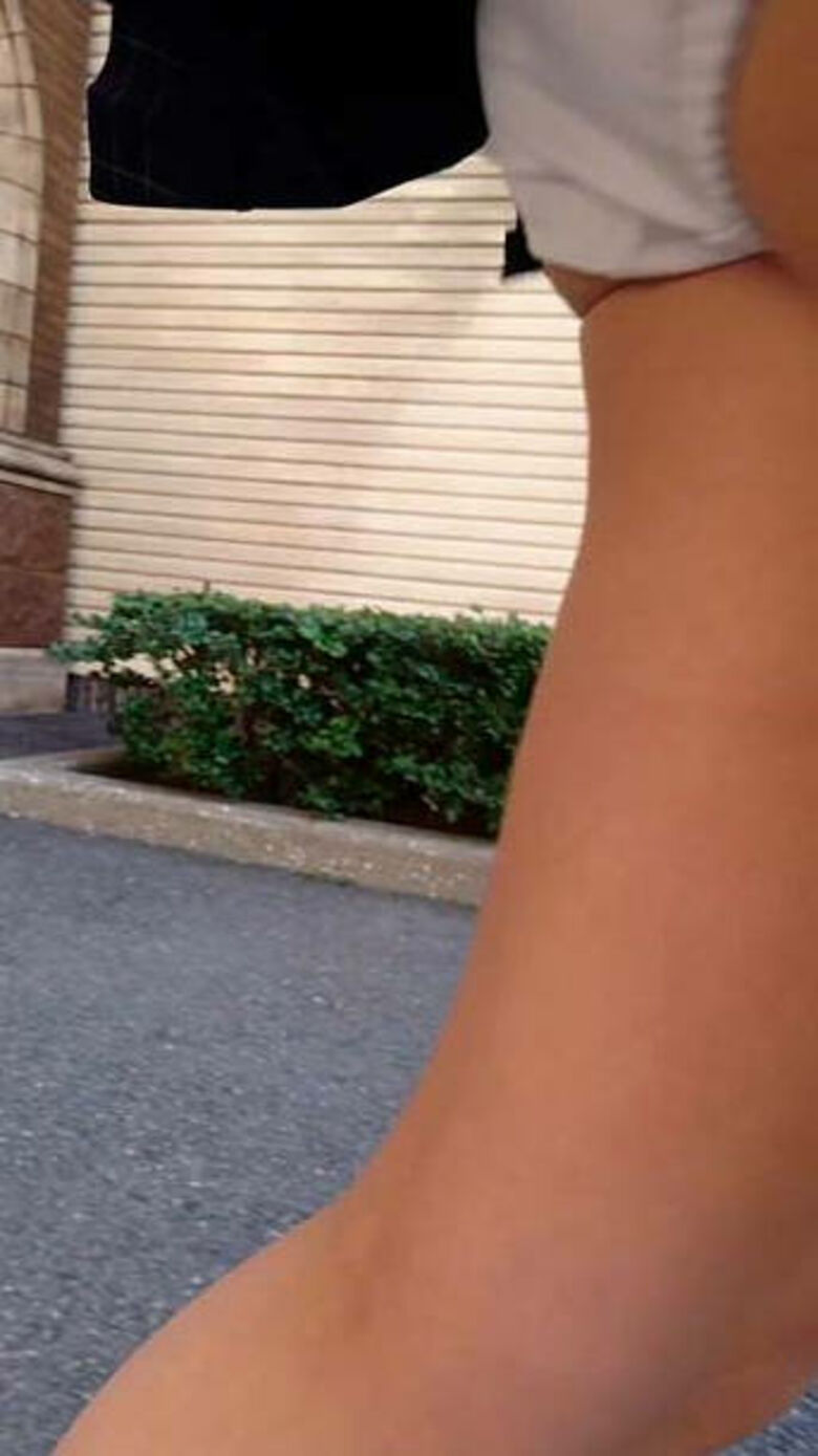 ミニスカートがずり上がり、トッププラスの尊さを誇るデルタゾーンがチラ見え。