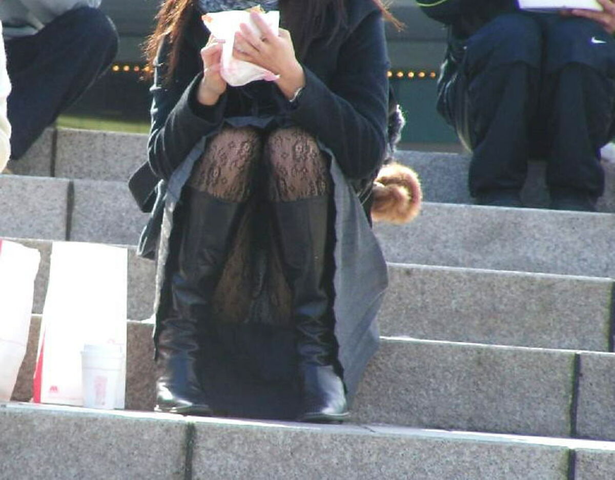 - 【画像】脚長効果も期待できる?!ローアングルパンチラ