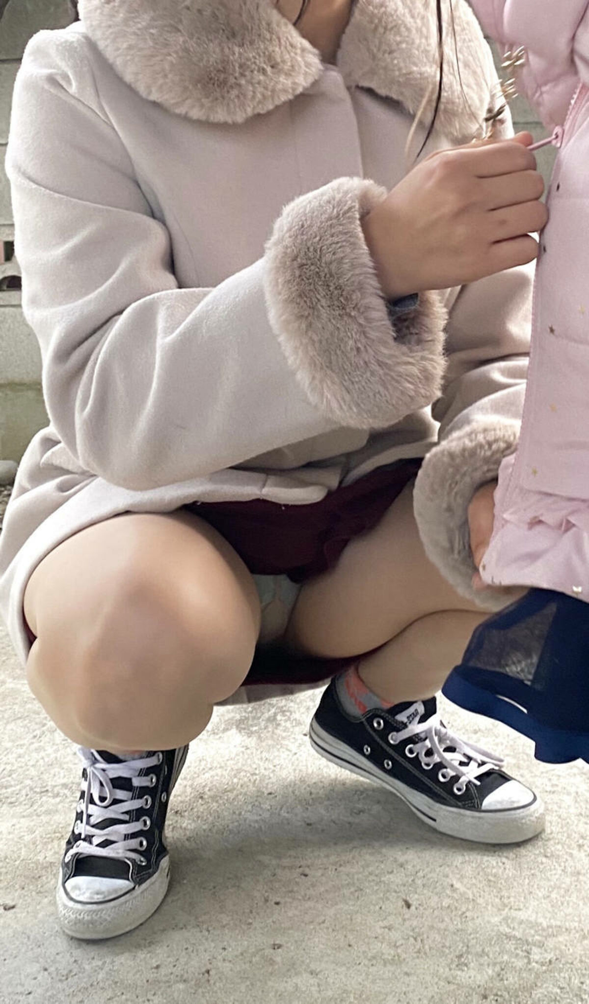 冬物だから木枯らしが吹く程度では捲れないけど、しゃがんだり座ったりしたときに