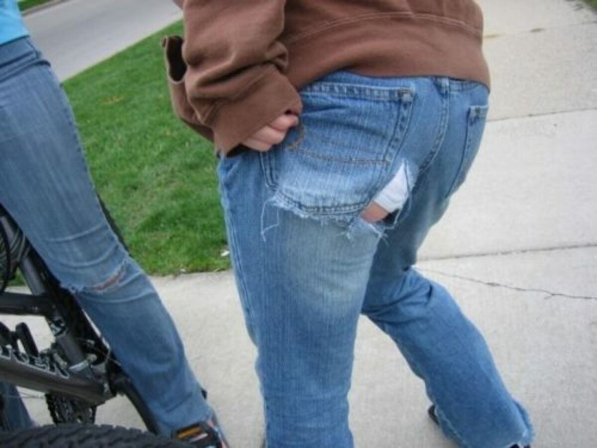 「おしゃれなダメージジーンズ」って…いや穴からパンツ丸見えやんけ!!