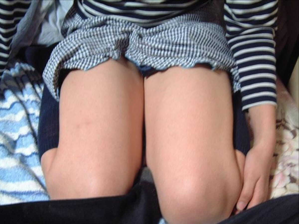 ぴったりと閉じられた両太ももとスカートの裾が生み出す逆三角の隙間。